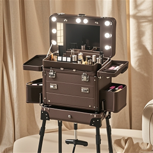带灯带伸缩脚架双开多层美妆工具收纳箱